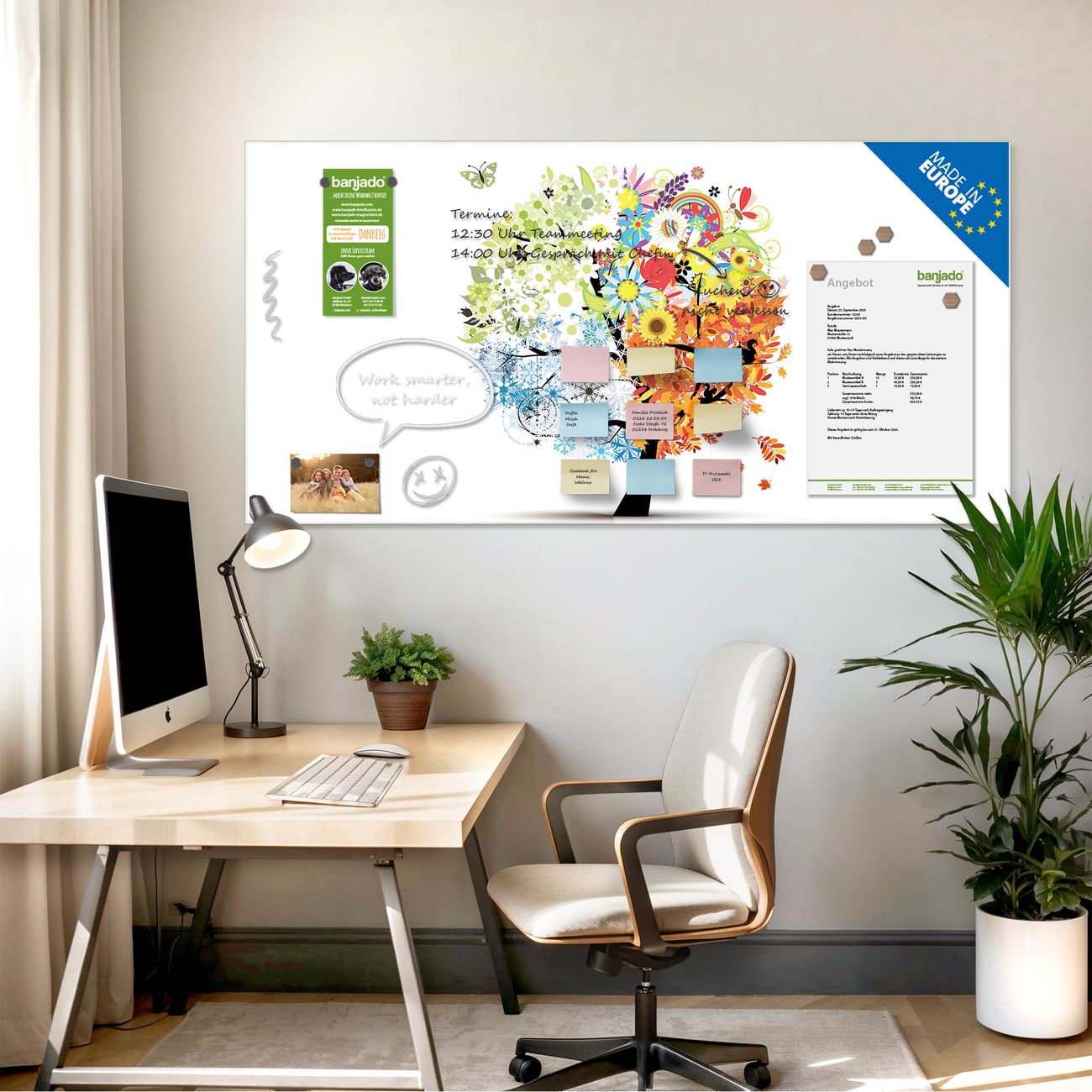 Jede Glas Magnettafel wird in unserer Werkstatt von Hand gefertigt und sorgfältig geprüft. So erhalten Sie ein echtes Qualitätsprodukt, das Funktion und Ästhetik perfekt vereint.?? Warum banjado?