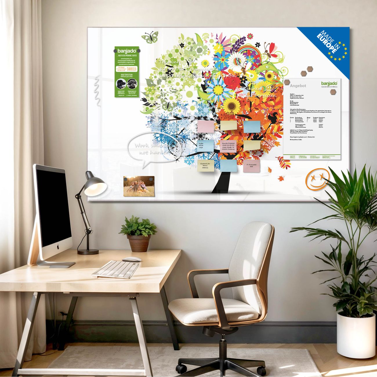 Die banjado Glas Magnettafel mit dem Motiv Motiv Vier Jahreszeiten verbindet Funktionalität mit Stil. Sie ersetzt das Zettelchaos durch klare Strukturen und bringt dabei eine warme, natürliche Atmosphäre in Ihr Zuhause. Ob im Büro, in der Küche oder im Eingangsbereich - dieses Design-Board zieht Blicke an und sorgt für Ordnung mit Charakter.