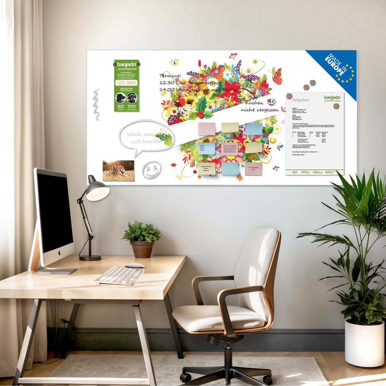 Die banjado Glas Magnettafel mit dem Motiv Motiv Sommer verbindet Funktionalität mit Stil. Sie ersetzt das Zettelchaos durch klare Strukturen und bringt dabei eine warme, natürliche Atmosphäre in Ihr Zuhause. Ob im Büro, in der Küche oder im Eingangsbereich - dieses Design-Board zieht Blicke an und sorgt für Ordnung mit Charakter.