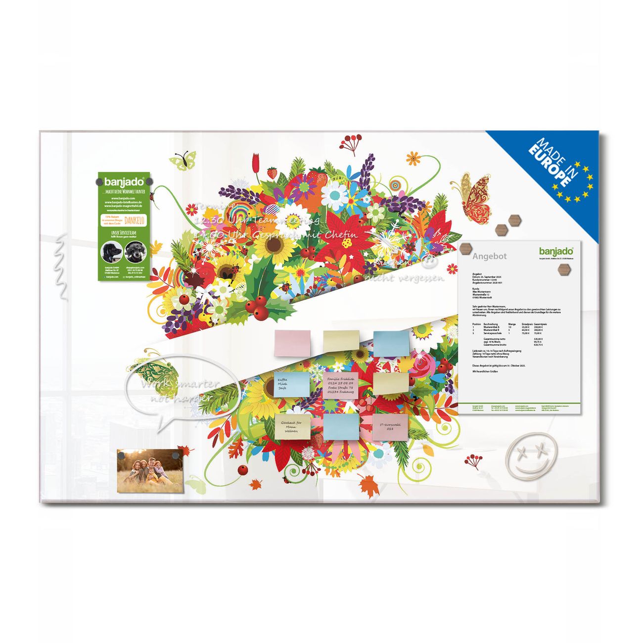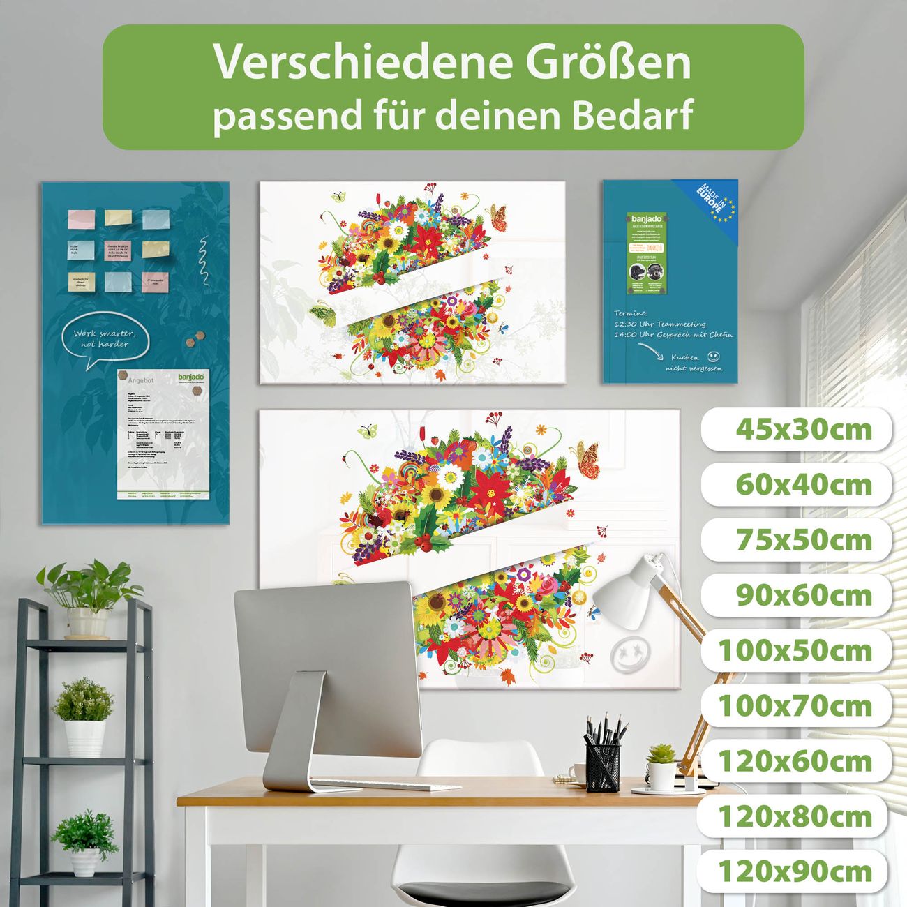 Jede Glas Magnettafel wird in unserer Werkstatt von Hand gefertigt und sorgfältig geprüft. So erhalten Sie ein echtes Qualitätsprodukt, das Funktion und Ästhetik perfekt vereint.?? Warum banjado?