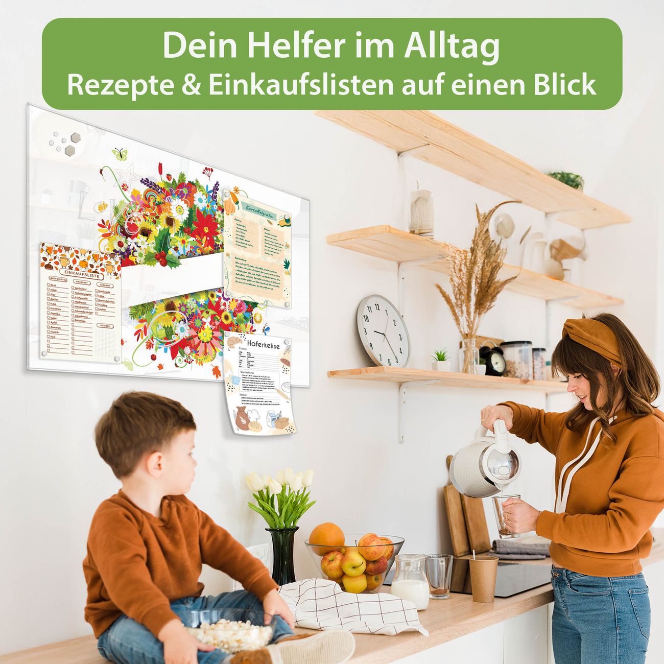 Auf der glatten Glasoberfläche lassen sich Termine, Rezepte oder Notizen ganz einfach mit Kreidestiften festhalten und rückstandslos entfernen. Starke Neodym-Magnete halten Ihre wichtigsten Erinnerungen sicher an Ort und Stelle. So entsteht Ihre ganz persönliche Ideenwand - jeden Tag neu.