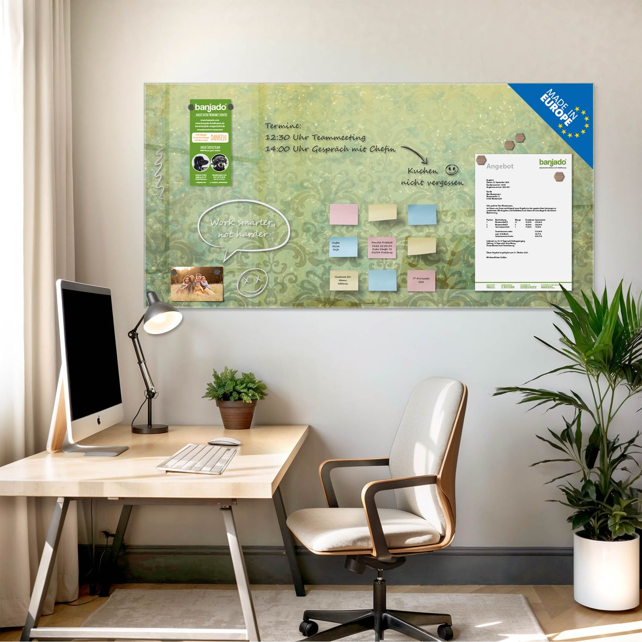 Die banjado Glas Magnettafel mit dem Motiv Motiv Vintage Messing verbindet Funktionalität mit Stil. Sie ersetzt das Zettelchaos durch klare Strukturen und bringt dabei eine warme, natürliche Atmosphäre in Ihr Zuhause. Ob im Büro, in der Küche oder im Eingangsbereich - dieses Design-Board zieht Blicke an und sorgt für Ordnung mit Charakter.