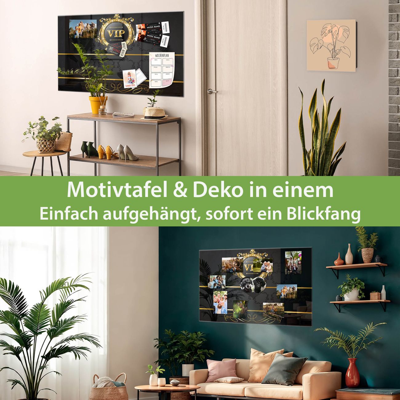 Ein Stück Design, das Ihren Alltag organisiert. Schreiben, heften, inspirieren - alles an einem Ort. Qualität, die man spürt. Montage leicht gemacht. Handwerk mit Herz - veredelt in Sachsen. Einzigartiges Design mit Motiv Motiv VIP Beschreibbare Glasoberfläche, leicht zu reinigen Starke Magnetkraft durch Stahlrückwand Inklusive 4 Neodym-Magneten Flexible Montageoptionen Handveredelt in Sachsen - Qualität, die bleibt