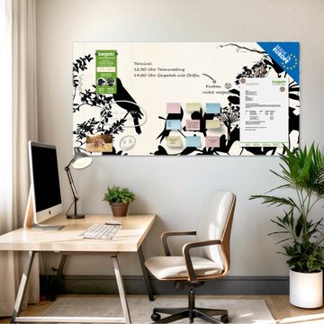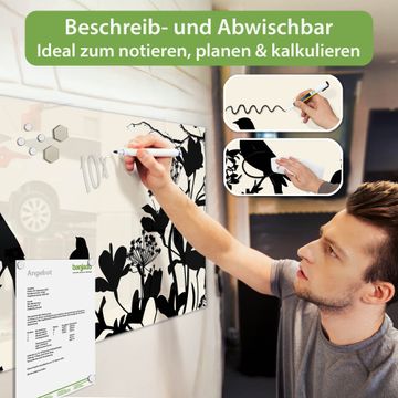 Die banjado Glas Magnettafel mit dem Motiv Motiv Vögel Schattenriß verbindet Funktionalität mit Stil. Sie ersetzt das Zettelchaos durch klare Strukturen und bringt dabei eine warme, natürliche Atmosphäre in Ihr Zuhause. Ob im Büro, in der Küche oder im Eingangsbereich - dieses Design-Board zieht Blicke an und sorgt für Ordnung mit Charakter.