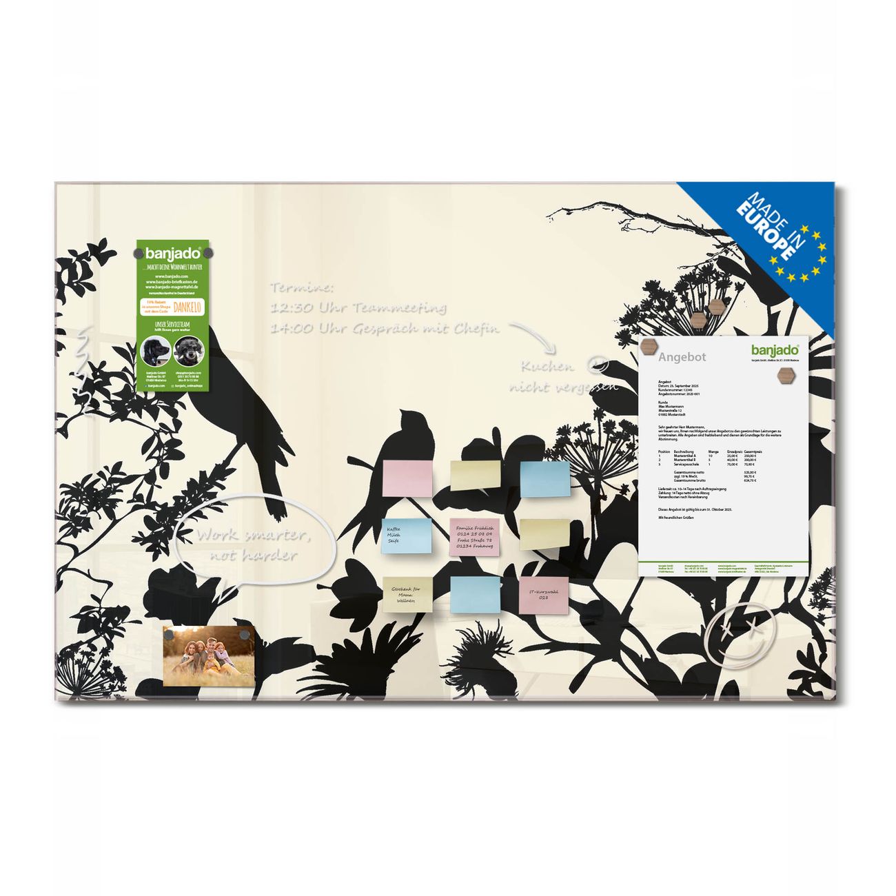 Glas Magnettafel im Querformat Motiv Vögel Schattenriß