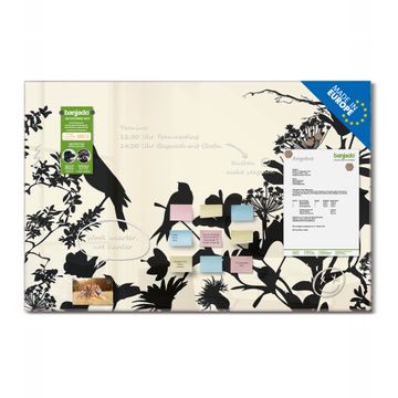 Die banjado Glas Magnettafel mit dem Motiv Motiv Vögel Schattenriß verbindet Funktionalität mit Stil. Sie ersetzt das Zettelchaos durch klare Strukturen und bringt dabei eine warme, natürliche Atmosphäre in Ihr Zuhause. Ob im Büro, in der Küche oder im Eingangsbereich - dieses Design-Board zieht Blicke an und sorgt für Ordnung mit Charakter.