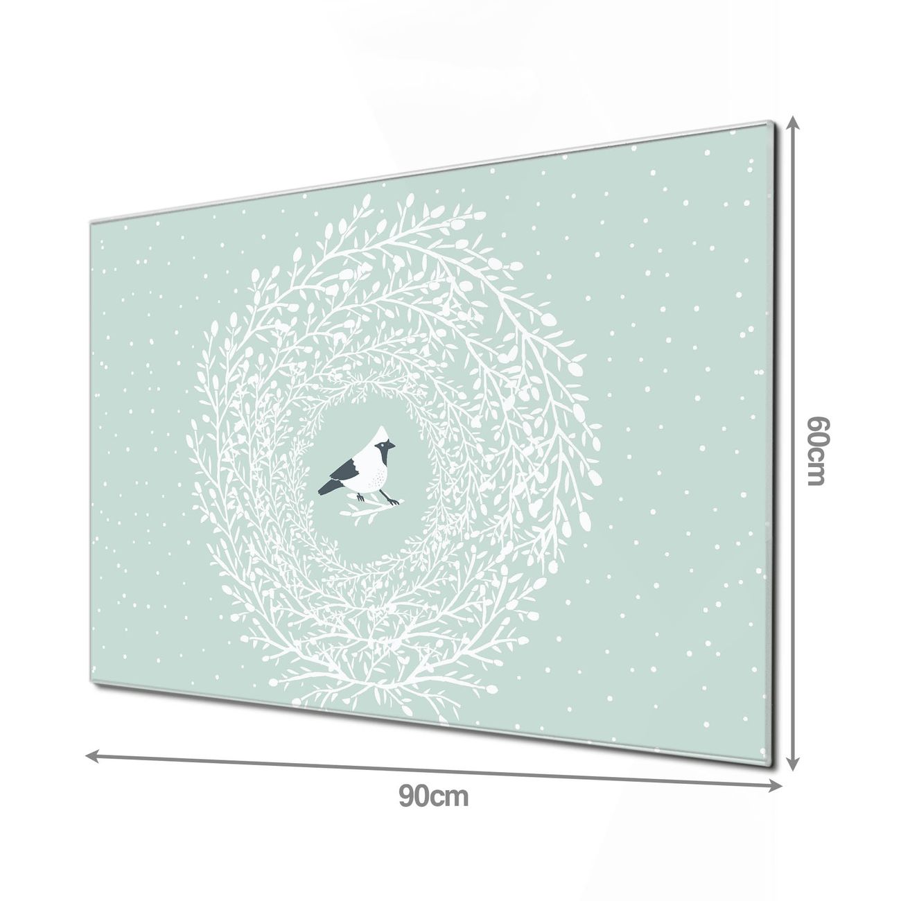 Material  4mm Sicherheitsglas mit Metallrückwand Eigenschaften  beschreibbar, magnetisch, kratzfest Maße  90x60x0,6cm, 8,10kg schwer Motiv  Nummer 12647 Vogel im Kranz Zubehör  inklusive 4 Neodym-Magnete