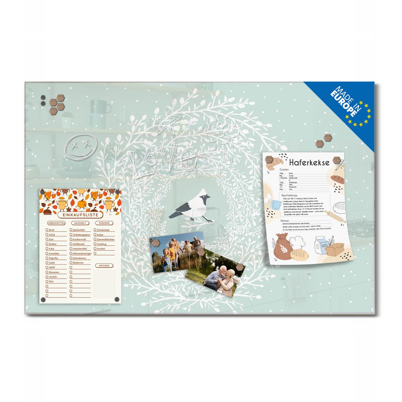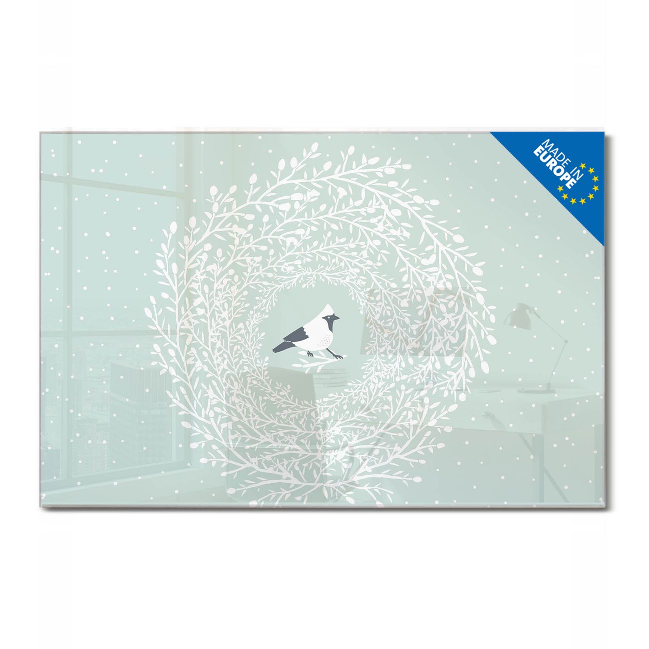 Glas Magnettafel im Querformat Motiv Vogel im Kranz