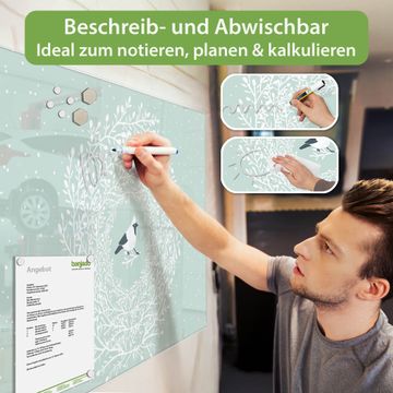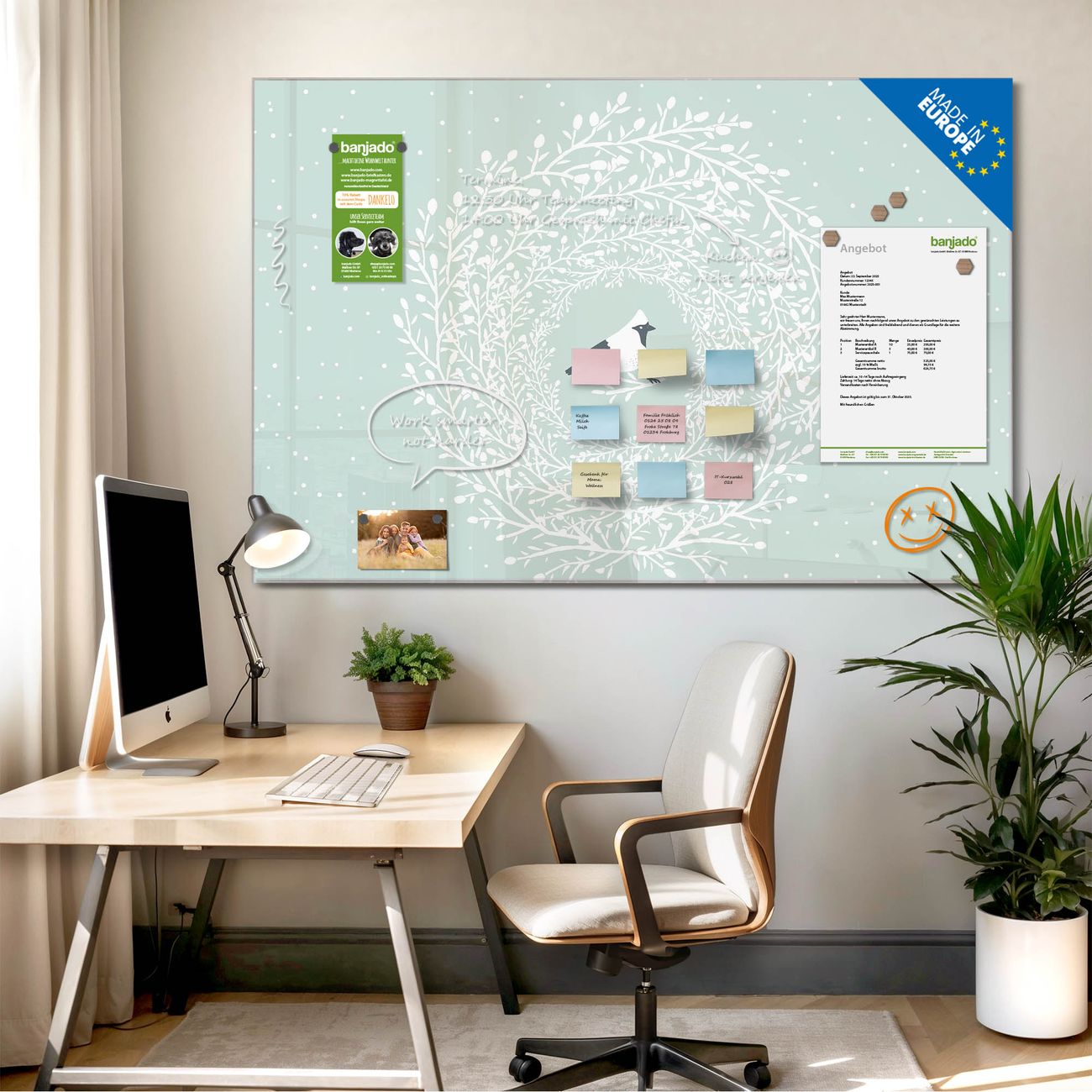 Die banjado Glas Magnettafel mit dem Motiv Motiv Vogel im Kranz verbindet Funktionalität mit Stil. Sie ersetzt das Zettelchaos durch klare Strukturen und bringt dabei eine warme, natürliche Atmosphäre in Ihr Zuhause. Ob im Büro, in der Küche oder im Eingangsbereich - dieses Design-Board zieht Blicke an und sorgt für Ordnung mit Charakter.