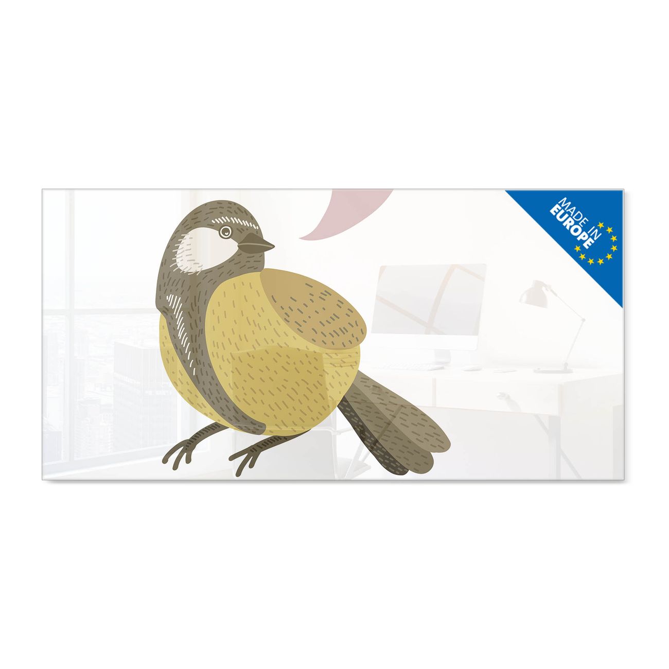 Glas Magnettafel im Querformat Motiv Vogel mit Sprechblase