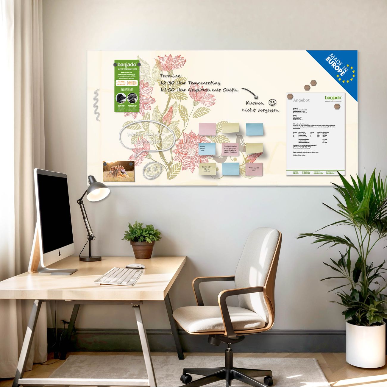 Die banjado Glas Magnettafel mit dem Motiv Motiv Vogelpaar verbindet Funktionalität mit Stil. Sie ersetzt das Zettelchaos durch klare Strukturen und bringt dabei eine warme, natürliche Atmosphäre in Ihr Zuhause. Ob im Büro, in der Küche oder im Eingangsbereich - dieses Design-Board zieht Blicke an und sorgt für Ordnung mit Charakter.