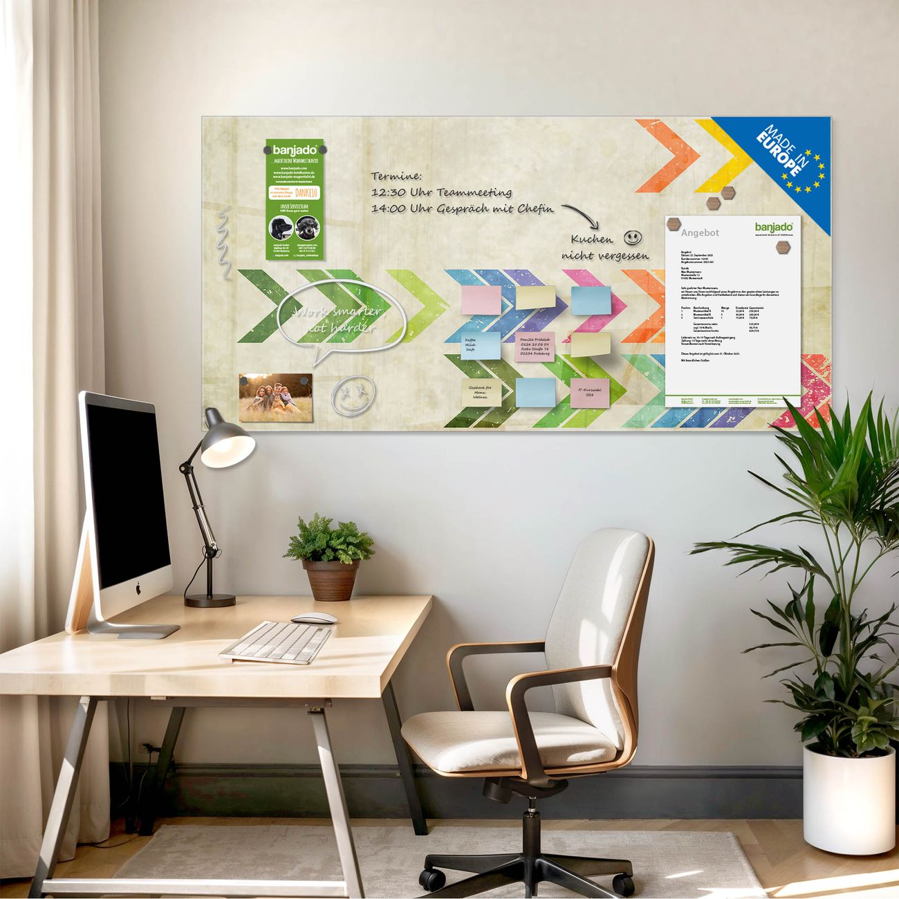 Jede Glas Magnettafel wird in unserer Werkstatt von Hand gefertigt und sorgfältig geprüft. So erhalten Sie ein echtes Qualitätsprodukt, das Funktion und Ästhetik perfekt vereint.?? Warum banjado?