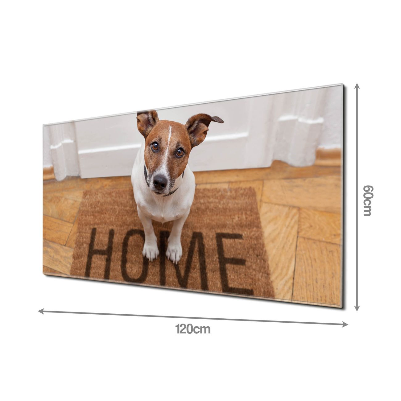 Material: 4mm Sicherheitsglas mit Metallrückwand Eigenschaften: beschreibbar, magnetisch, kratzfest Maße: 120x60x0,6cm, 10,80kg schwer Motiv Nummer 10476 Wachhund Jack Russel Zubehör: inklusive 4 Neodym-Magnete