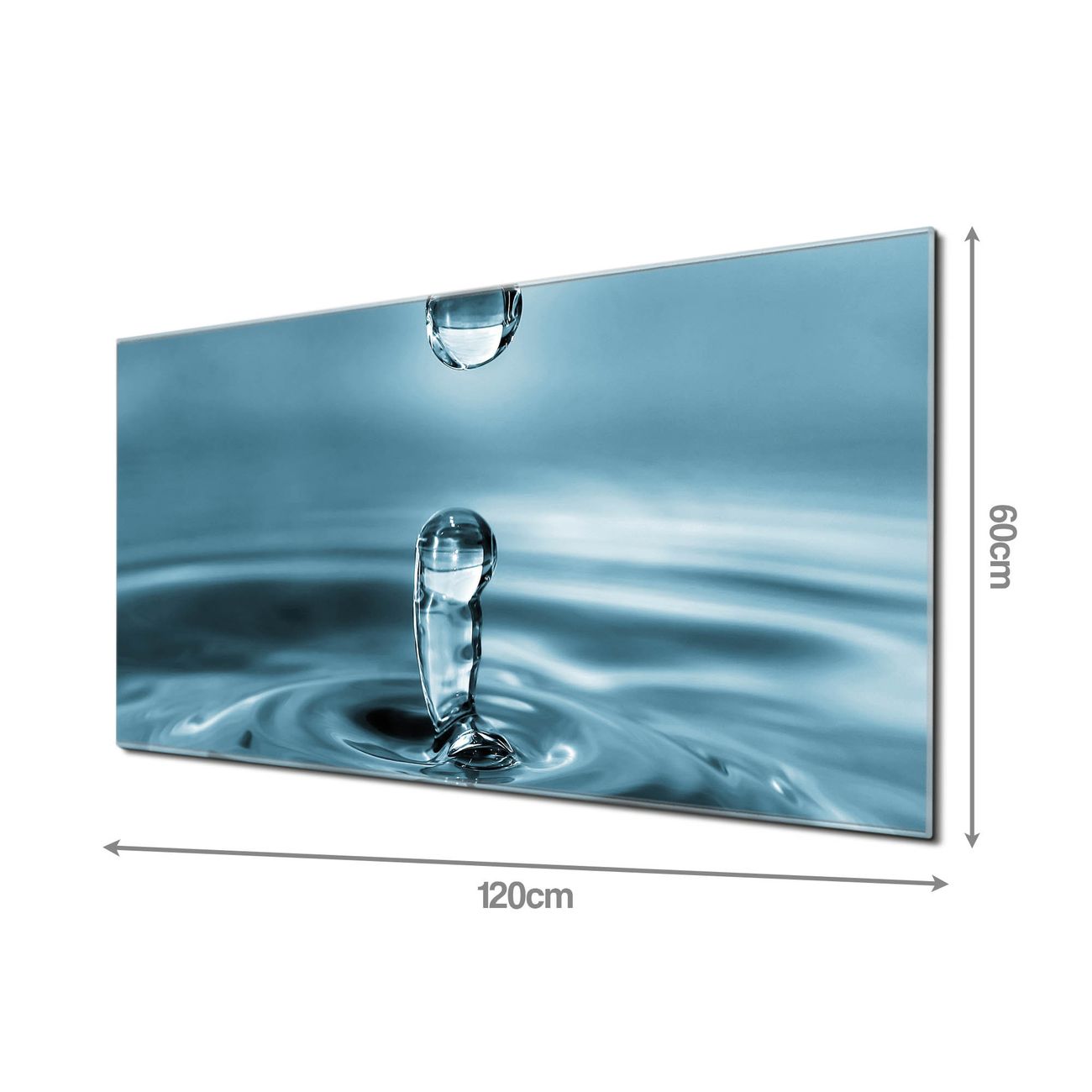 Material: 4mm Sicherheitsglas mit Metallrückwand Eigenschaften: beschreibbar, magnetisch, kratzfest Maße: 120x60x0,6cm, 10,80kg schwer Motiv Nummer 10139 Wassertropfen Zubehör: inklusive 4 Neodym-Magnete