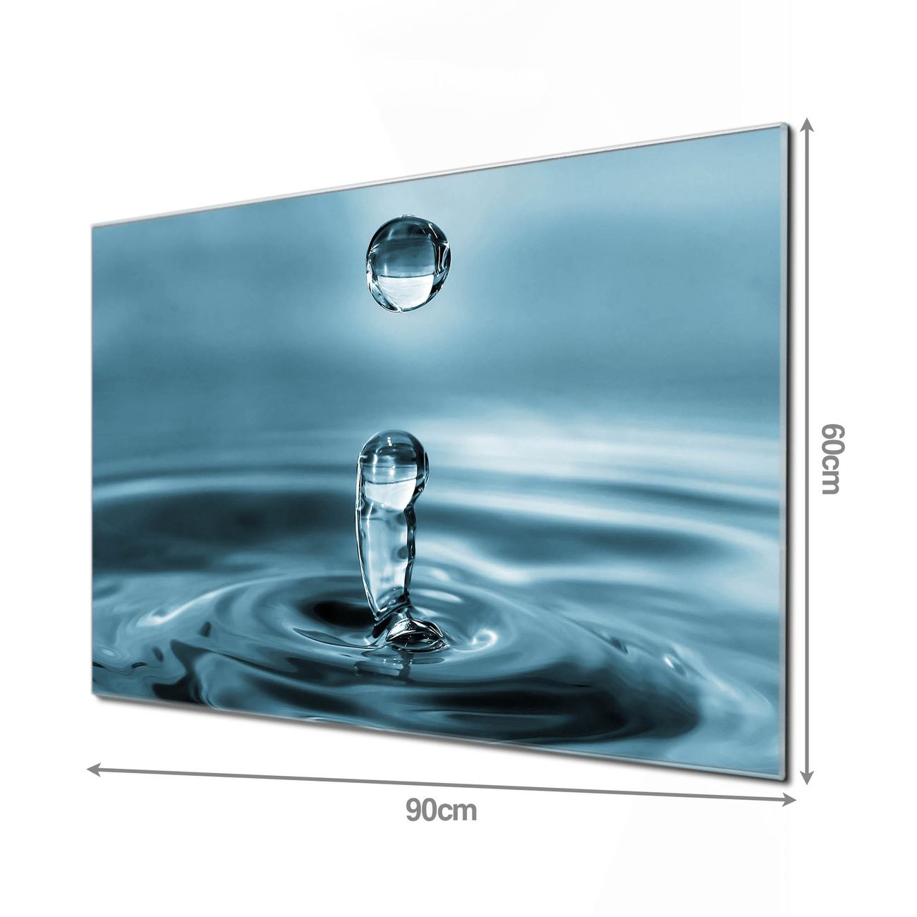 Material: 4mm Sicherheitsglas mit Metallrückwand Eigenschaften: beschreibbar, magnetisch, kratzfest Maße: 90x60x0,6cm, 8,10kg schwer Motiv Nummer 10139 Wassertropfen Zubehör: inklusive 4 Neodym-Magnete