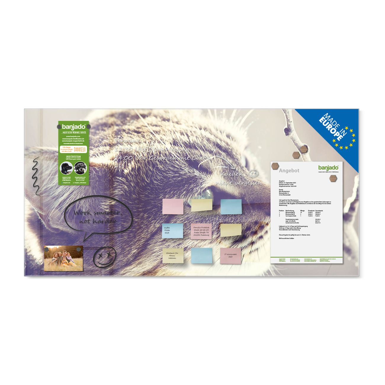Bitte beachten Sie, dass ausschliessliche spezielle Magnete an der Glastafel haften. Wir empfehlen banjado Neodym Magnete, diese sind durch uns auf Wirksamkeit geprüft.