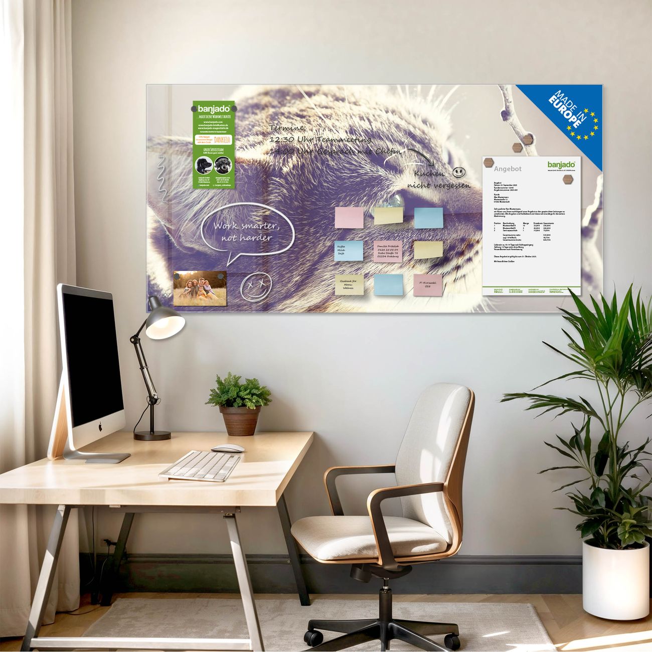 Jede Glas Magnettafel wird in unserer Werkstatt von Hand gefertigt und sorgfältig geprüft. So erhalten Sie ein echtes Qualitätsprodukt, das Funktion und Ästhetik perfekt vereint.?? Warum banjado?