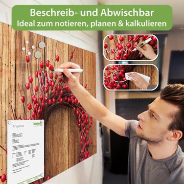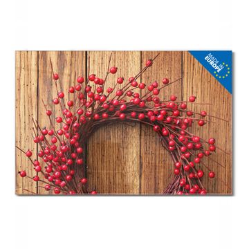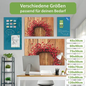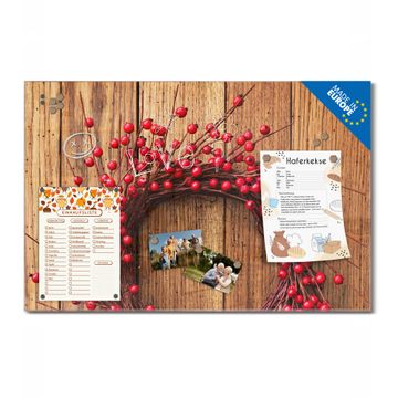 Material: 4mm Sicherheitsglas mit Metallrückwand Eigenschaften: beschreibbar, magnetisch, kratzfest Maße: 120x60x0,6cm, 10,80kg schwer Motiv Nummer 12762 Weihnachtskranz Zubehör: inklusive 4 Neodym-Magnete