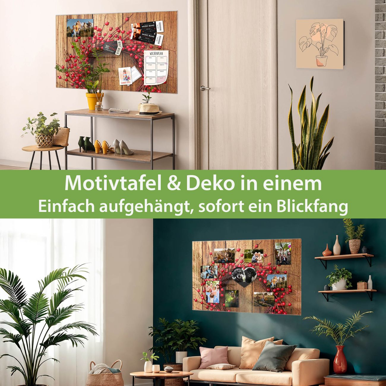 Die banjado Glas Magnettafel mit dem Motiv Motiv Weihnachtskranz verbindet Funktionalität mit Stil. Sie ersetzt das Zettelchaos durch klare Strukturen und bringt dabei eine warme, natürliche Atmosphäre in Ihr Zuhause. Ob im Büro, in der Küche oder im Eingangsbereich - dieses Design-Board zieht Blicke an und sorgt für Ordnung mit Charakter.
