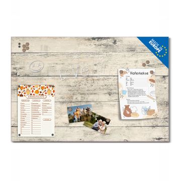 Material: 4mm Sicherheitsglas mit Metallrückwand Eigenschaften: beschreibbar, magnetisch, kratzfest Maße: 75x50x0,6cm, 5,63kg schwer Motiv Nummer 11933 Weiße Planken H Zubehör: inklusive 4 Neodym-Magnete