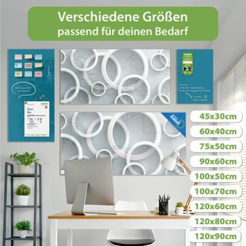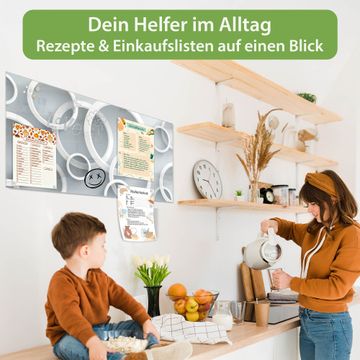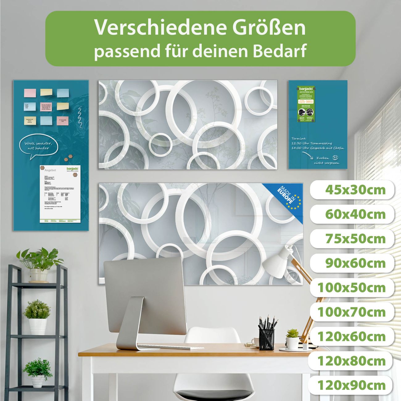 Die banjado Glas Magnettafel mit dem Motiv Motiv Weiße Ringe verbindet Funktionalität mit Stil. Sie ersetzt das Zettelchaos durch klare Strukturen und bringt dabei eine warme, natürliche Atmosphäre in Ihr Zuhause. Ob im Büro, in der Küche oder im Eingangsbereich - dieses Design-Board zieht Blicke an und sorgt für Ordnung mit Charakter.