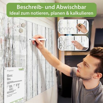 Die banjado Glas Magnettafel mit dem Motiv Motiv Weißer Bretterzaun verbindet Funktionalität mit Stil. Sie ersetzt das Zettelchaos durch klare Strukturen und bringt dabei eine warme, natürliche Atmosphäre in Ihr Zuhause. Ob im Büro, in der Küche oder im Eingangsbereich - dieses Design-Board zieht Blicke an und sorgt für Ordnung mit Charakter.