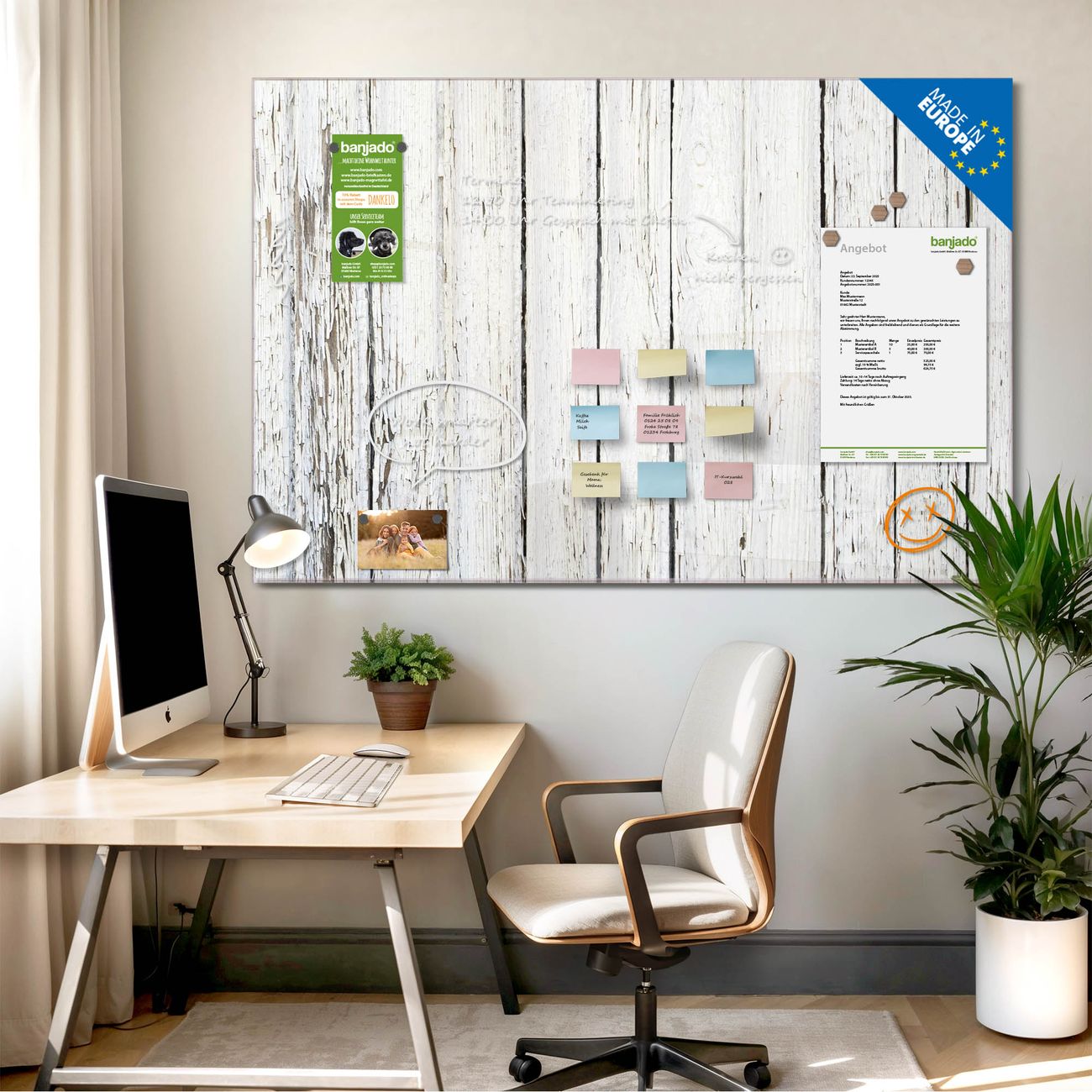 Die banjado Glas Magnettafel mit dem Motiv Motiv Weißer Bretterzaun verbindet Funktionalität mit Stil. Sie ersetzt das Zettelchaos durch klare Strukturen und bringt dabei eine warme, natürliche Atmosphäre in Ihr Zuhause. Ob im Büro, in der Küche oder im Eingangsbereich - dieses Design-Board zieht Blicke an und sorgt für Ordnung mit Charakter.