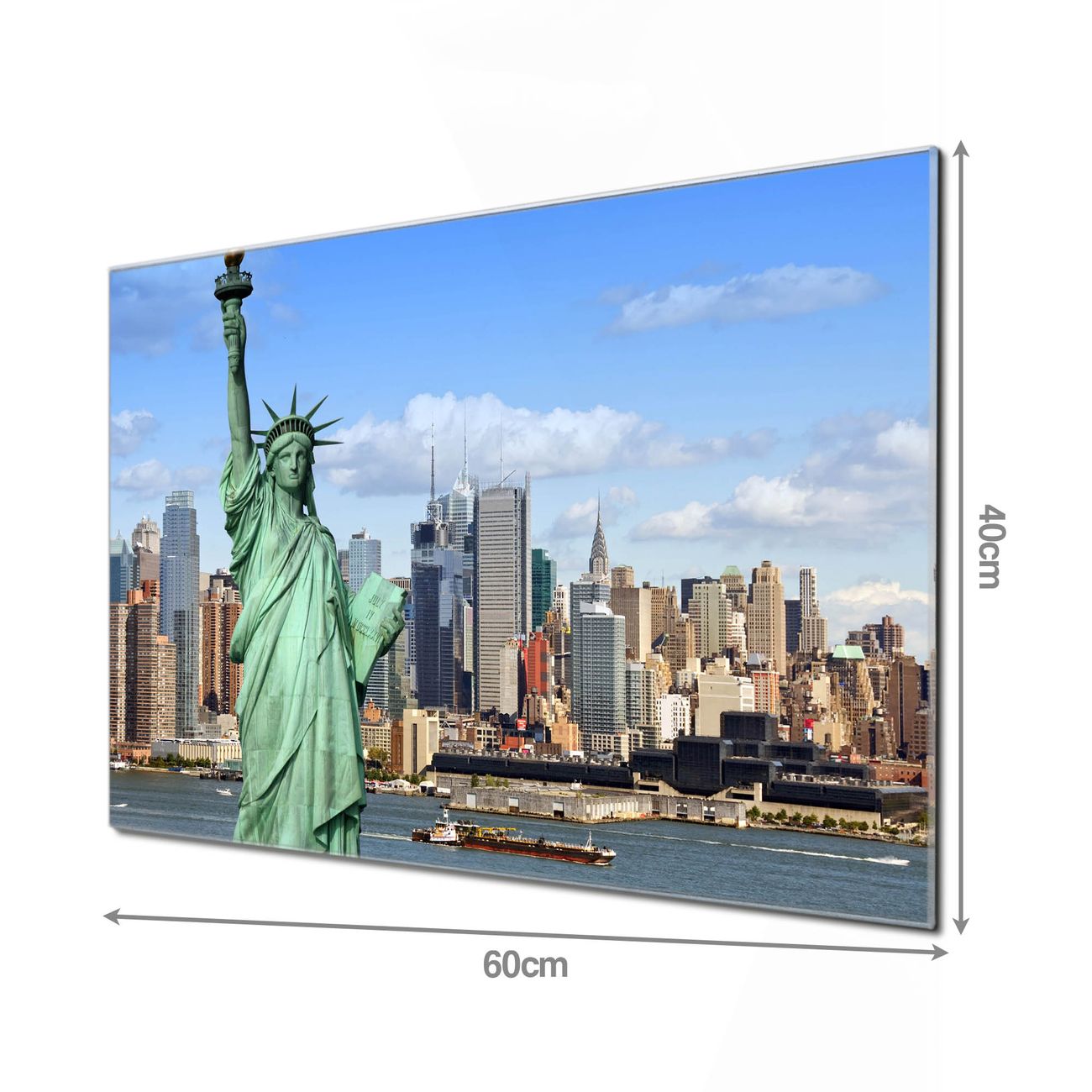 Material  4mm Sicherheitsglas mit Metallrückwand Eigenschaften  beschreibbar, magnetisch, kratzfest Maße  60x40x0,6cm, 3,6kg schwer Motiv  Nummer 12398 Welcome To NY Zubehör  inklusive 4 Neodym-Magnete