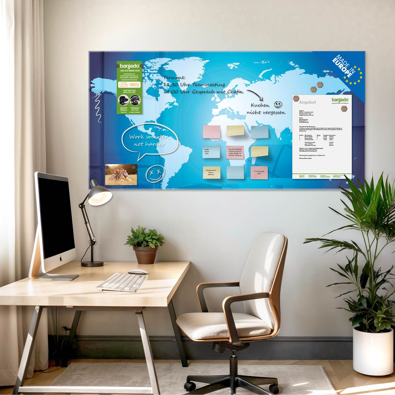 Glas Magnettafel im Querformat Motiv Weltkarte