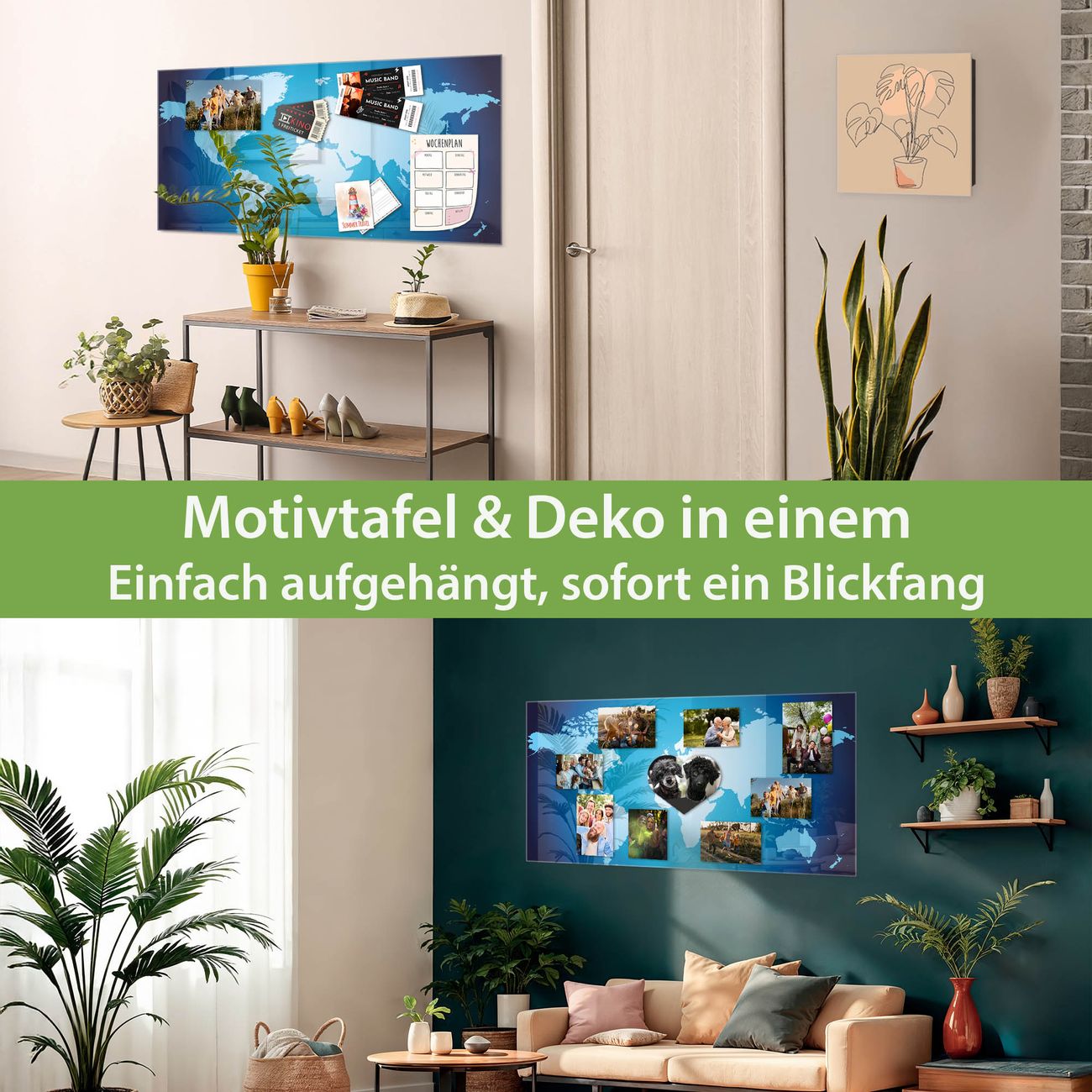 Ein Stück Design, das Ihren Alltag organisiert. Schreiben, heften, inspirieren - alles an einem Ort. Qualität, die man spürt. Montage leicht gemacht. Handwerk mit Herz - veredelt in Sachsen. Einzigartiges Design mit Motiv Motiv Weltkarte Beschreibbare Glasoberfläche, leicht zu reinigen Starke Magnetkraft durch Stahlrückwand Inklusive 4 Neodym-Magneten Flexible Montageoptionen Handveredelt in Sachsen - Qualität, die bleibt