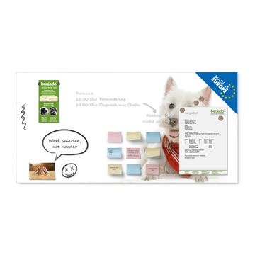 Die banjado Glas Magnettafel mit dem Motiv Motiv Westie verbindet Funktionalität mit Stil. Sie ersetzt das Zettelchaos durch klare Strukturen und bringt dabei eine warme, natürliche Atmosphäre in Ihr Zuhause. Ob im Büro, in der Küche oder im Eingangsbereich - dieses Design-Board zieht Blicke an und sorgt für Ordnung mit Charakter.