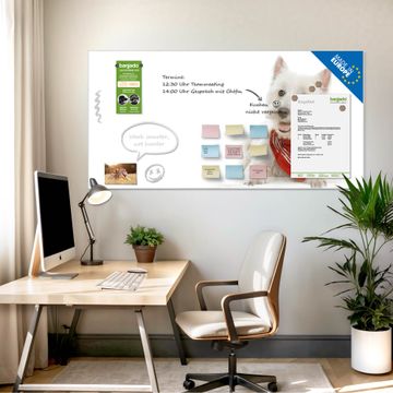 Auf der glatten Glasoberfläche lassen sich Termine, Rezepte oder Notizen ganz einfach mit Kreidestiften festhalten und rückstandslos entfernen. Starke Neodym-Magnete halten Ihre wichtigsten Erinnerungen sicher an Ort und Stelle. So entsteht Ihre ganz persönliche Ideenwand - jeden Tag neu.