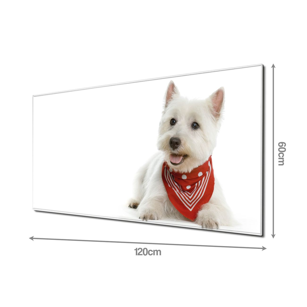 Material: 4mm Sicherheitsglas mit Metallrückwand Eigenschaften: beschreibbar, magnetisch, kratzfest Maße: 120x60x0,6cm, 10,80kg schwer Motiv Nummer 10192 Westie Zubehör: inklusive 4 Neodym-Magnete