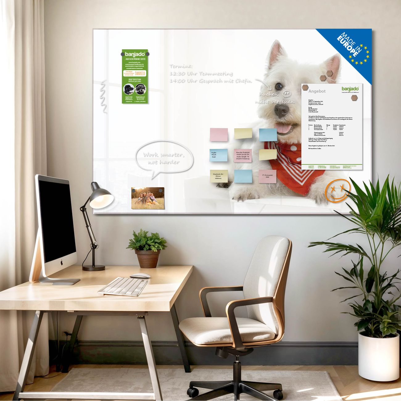 Die banjado Glas Magnettafel mit dem Motiv Motiv Westie verbindet Funktionalität mit Stil. Sie ersetzt das Zettelchaos durch klare Strukturen und bringt dabei eine warme, natürliche Atmosphäre in Ihr Zuhause. Ob im Büro, in der Küche oder im Eingangsbereich - dieses Design-Board zieht Blicke an und sorgt für Ordnung mit Charakter.