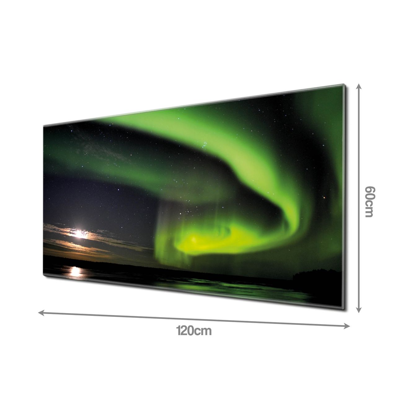 Material: 4mm Sicherheitsglas mit Metallrückwand Eigenschaften: beschreibbar, magnetisch, kratzfest Maße: 120x60x0,6cm, 10,80kg schwer Motiv Nummer 10236 Wetterleuchten Zubehör: inklusive 4 Neodym-Magnete