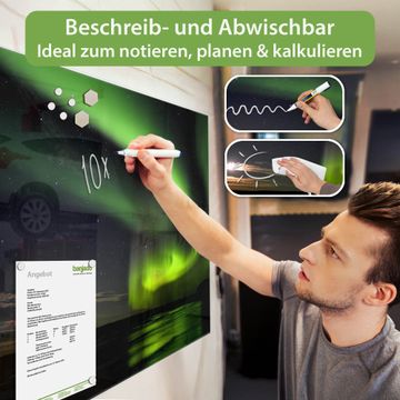 Gefertigt aus gehärtetem Sicherheitsglas mit einer magnetischen Rückwand aus Stahl überzeugt diese Magnettafel durch Stabilität und Langlebigkeit. Die Oberfläche bleibt dauerhaft brillant und pflegeleicht, selbst bei täglicher Nutzung.