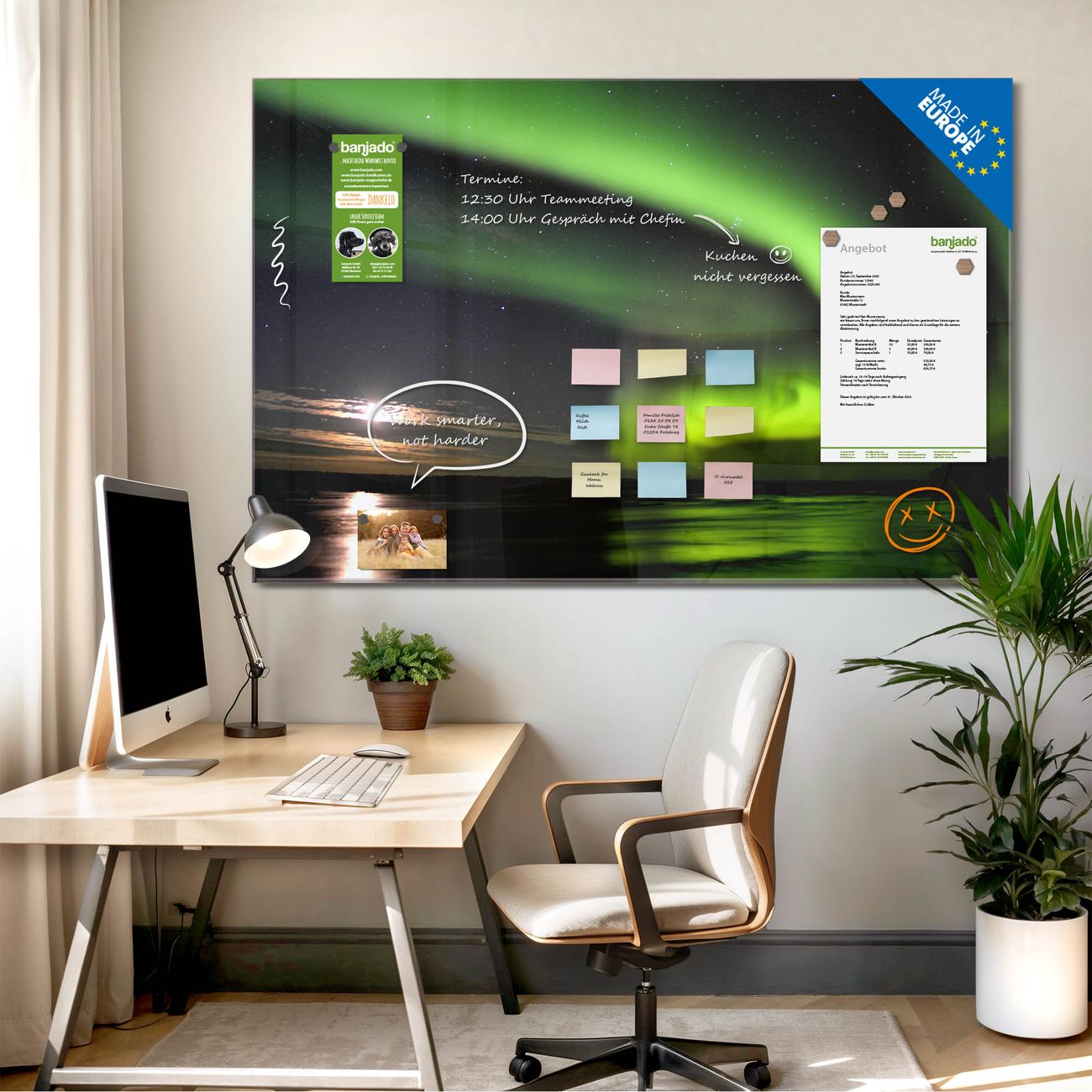 Jede Glas Magnettafel wird in unserer Werkstatt von Hand gefertigt und sorgfältig geprüft. So erhalten Sie ein echtes Qualitätsprodukt, das Funktion und Ästhetik perfekt vereint.?? Warum banjado?