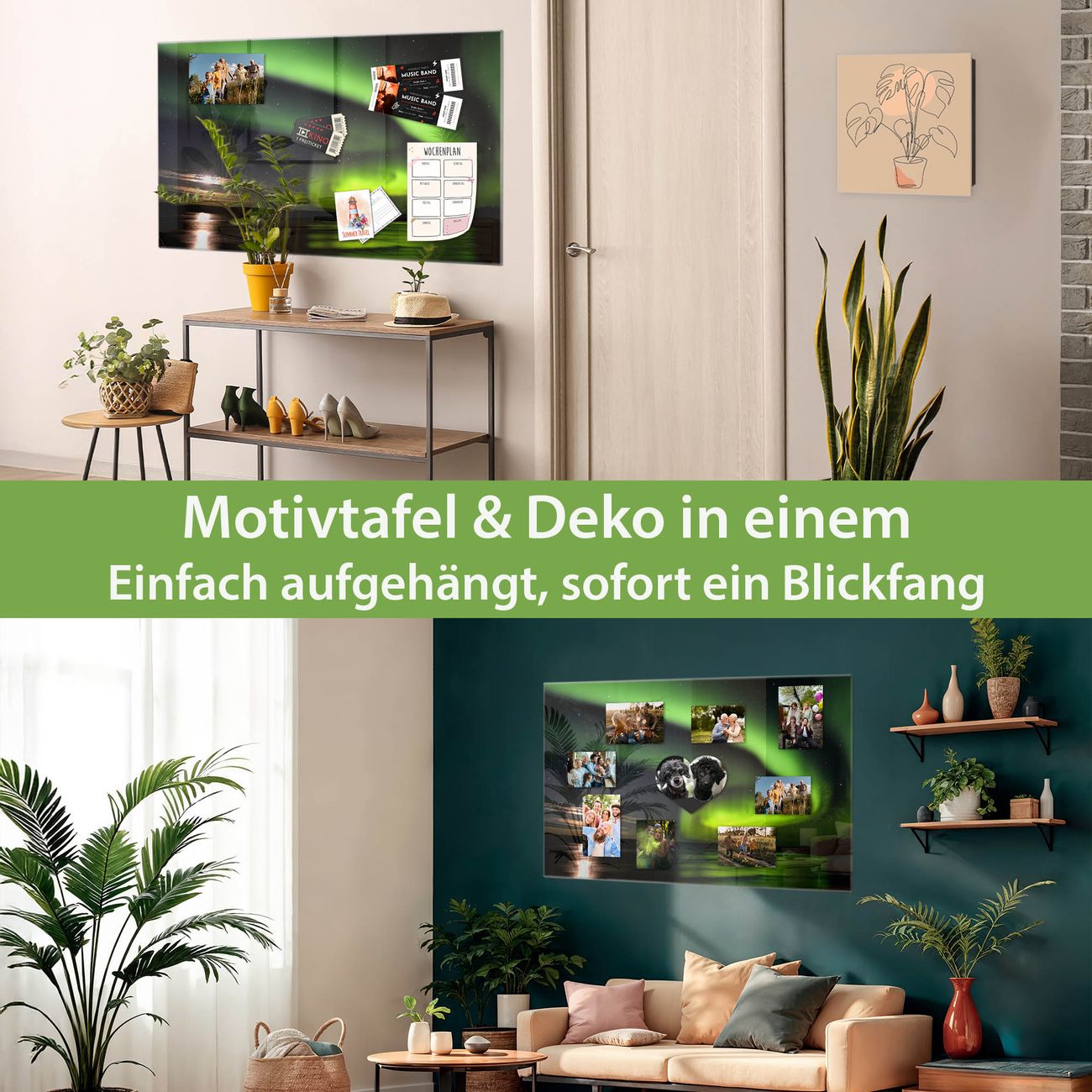 Die banjado Glas Magnettafel mit dem Motiv Motiv Wetterleuchten verbindet Funktionalität mit Stil. Sie ersetzt das Zettelchaos durch klare Strukturen und bringt dabei eine warme, natürliche Atmosphäre in Ihr Zuhause. Ob im Büro, in der Küche oder im Eingangsbereich - dieses Design-Board zieht Blicke an und sorgt für Ordnung mit Charakter.