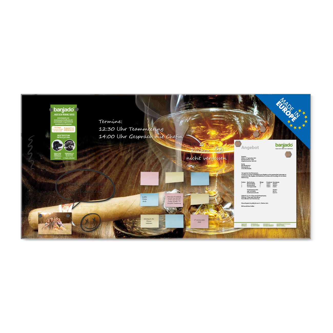 Glas Magnettafel im Querformat Motiv Whiskey & Cigar