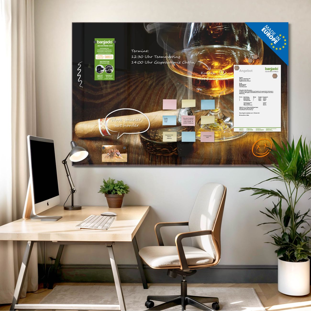 Glas Magnettafel im Querformat Motiv Whiskey & Cigar