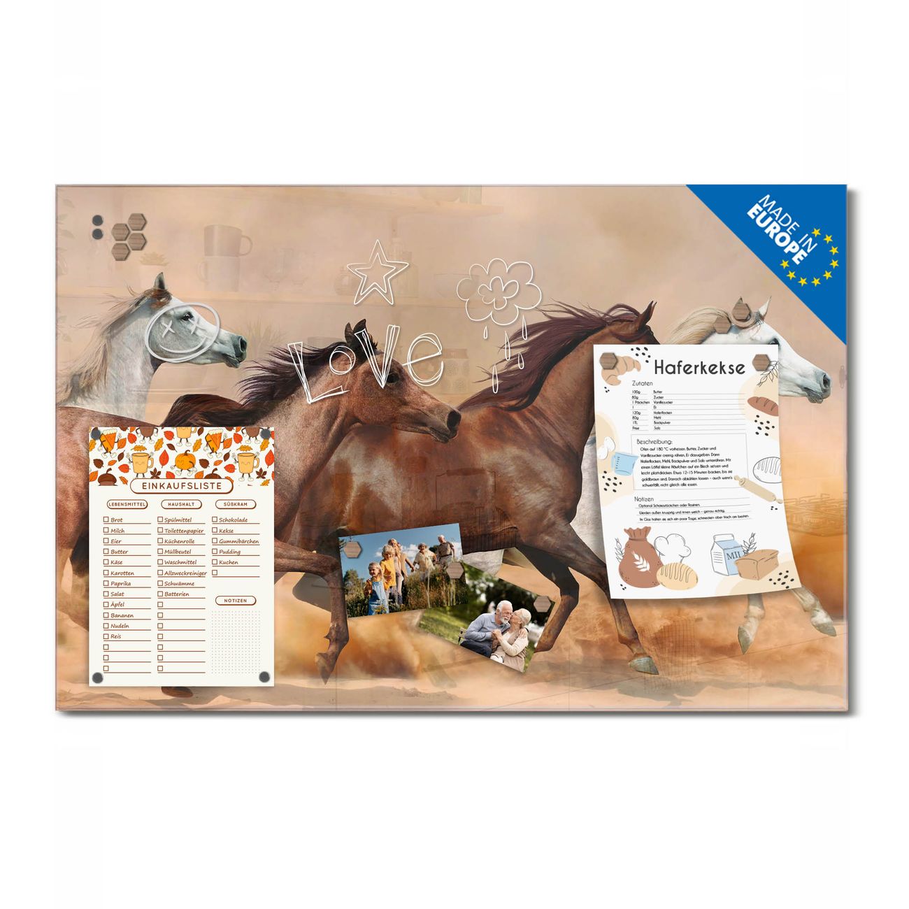 Glas Magnettafel im Querformat Motiv Wilde Pferde