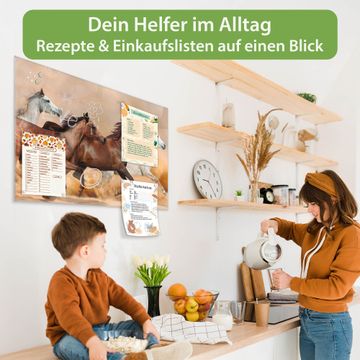 Die banjado Glas Magnettafel mit dem Motiv Motiv Wilde Pferde verbindet Funktionalität mit Stil. Sie ersetzt das Zettelchaos durch klare Strukturen und bringt dabei eine warme, natürliche Atmosphäre in Ihr Zuhause. Ob im Büro, in der Küche oder im Eingangsbereich - dieses Design-Board zieht Blicke an und sorgt für Ordnung mit Charakter.