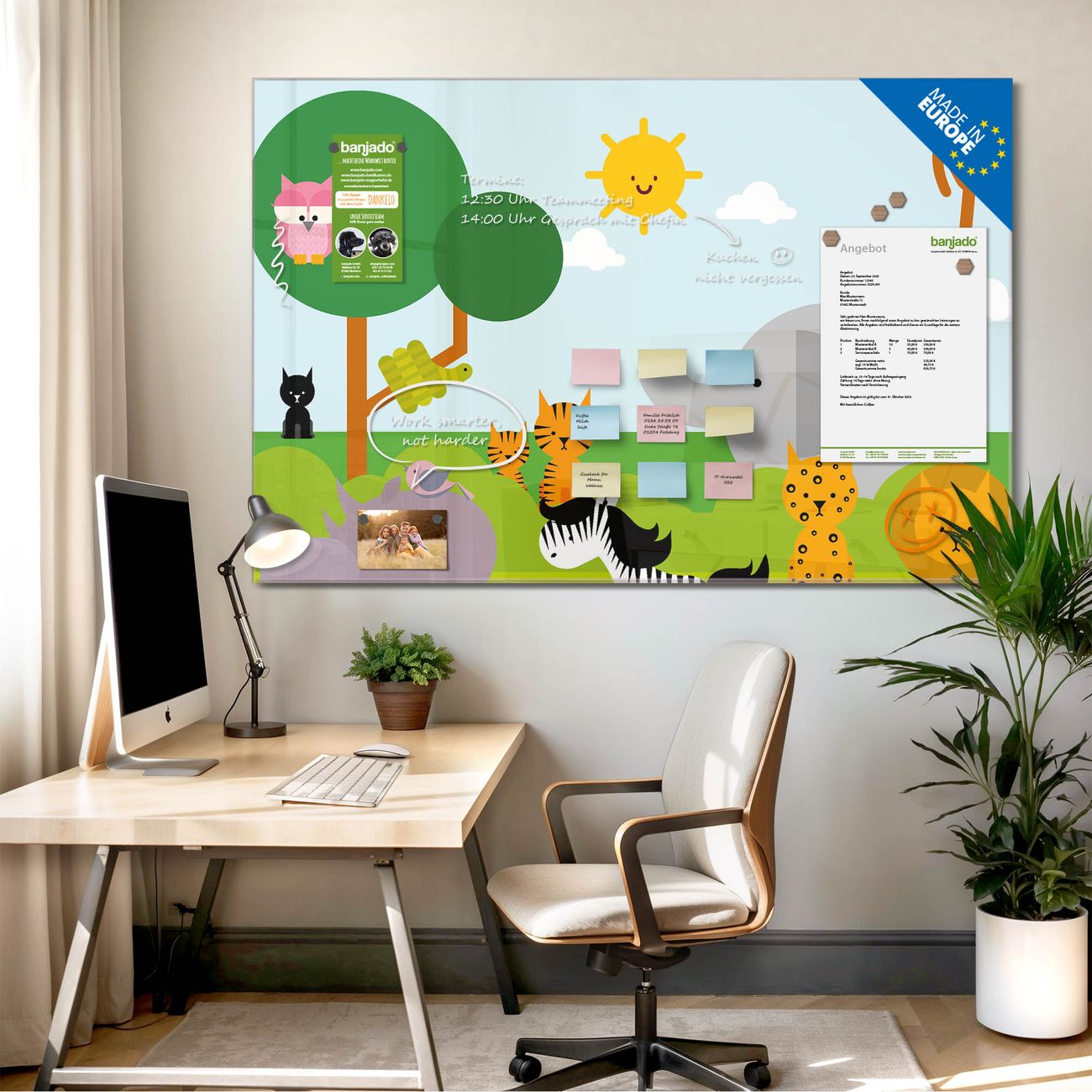 Die banjado Glas Magnettafel mit dem Motiv Motiv Wilde Tiere verbindet Funktionalität mit Stil. Sie ersetzt das Zettelchaos durch klare Strukturen und bringt dabei eine warme, natürliche Atmosphäre in Ihr Zuhause. Ob im Büro, in der Küche oder im Eingangsbereich - dieses Design-Board zieht Blicke an und sorgt für Ordnung mit Charakter.