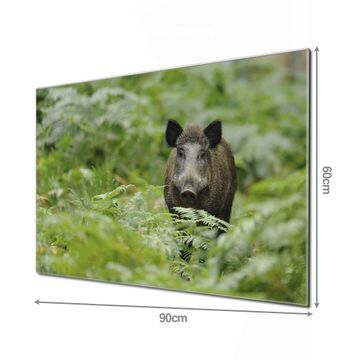 Material: 4mm Sicherheitsglas mit Metallrückwand Eigenschaften: beschreibbar, magnetisch, kratzfest Maße: 90x60x0,6cm, 8,10kg schwer Motiv Nummer 10495 Wildschwein Zubehör: inklusive 4 Neodym-Magnete