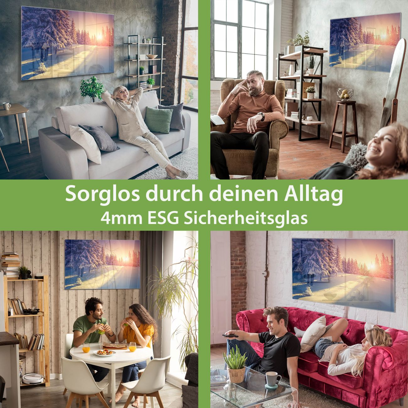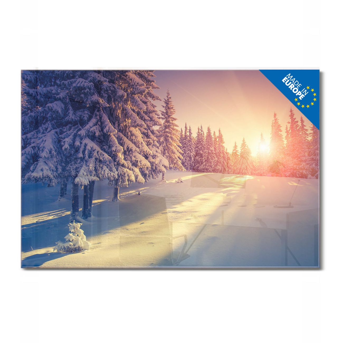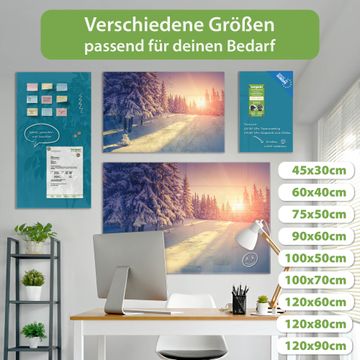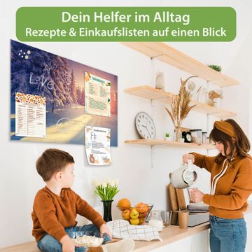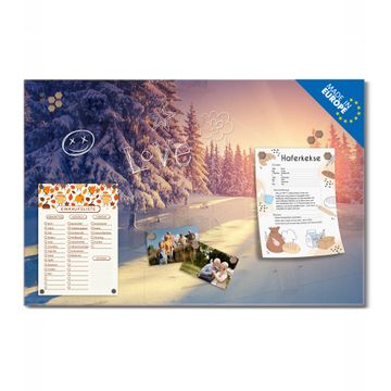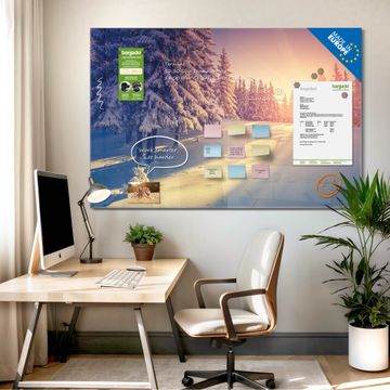 Material: 4mm Sicherheitsglas mit Metallrückwand Eigenschaften: beschreibbar, magnetisch, kratzfest Maße: 90x60x0,6cm, 8,10kg schwer Motiv Nummer 12664 Winterabend Zubehör: inklusive 4 Neodym-Magnete