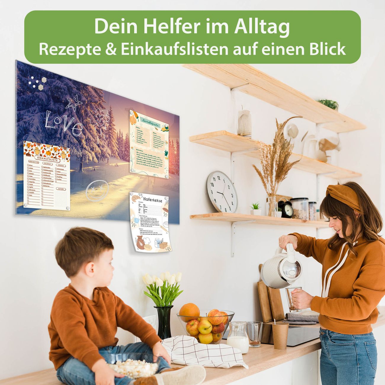 Auf der glatten Glasoberfläche lassen sich Termine, Rezepte oder Notizen ganz einfach mit Kreidestiften festhalten und rückstandslos entfernen. Starke Neodym-Magnete halten Ihre wichtigsten Erinnerungen sicher an Ort und Stelle. So entsteht Ihre ganz persönliche Ideenwand - jeden Tag neu.