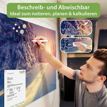 Die banjado Glas Magnettafel mit dem Motiv Motiv Winterabend verbindet Funktionalität mit Stil. Sie ersetzt das Zettelchaos durch klare Strukturen und bringt dabei eine warme, natürliche Atmosphäre in Ihr Zuhause. Ob im Büro, in der Küche oder im Eingangsbereich - dieses Design-Board zieht Blicke an und sorgt für Ordnung mit Charakter.