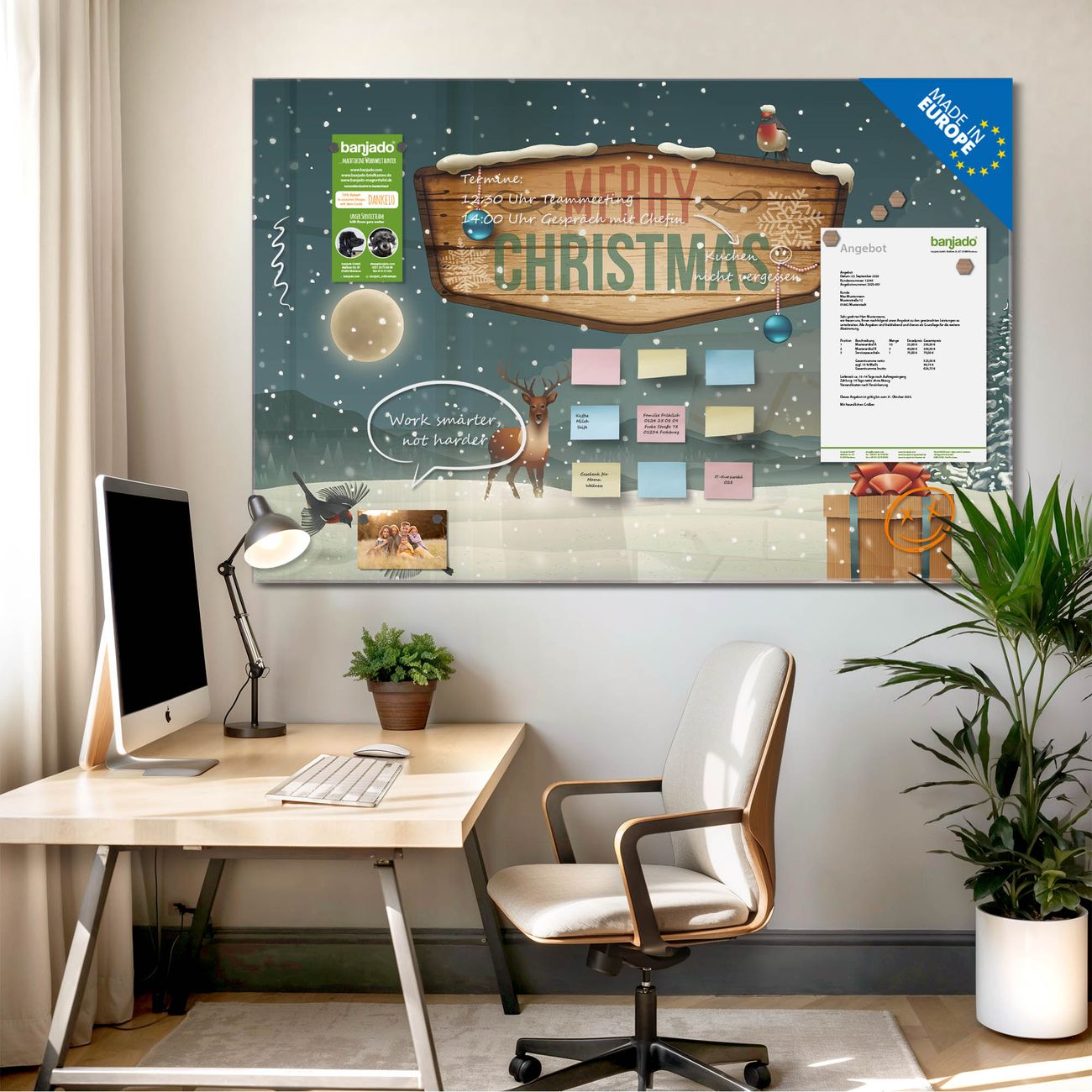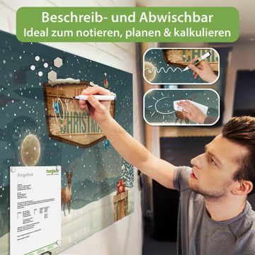 Die banjado Glas Magnettafel im Querformat mit Motiv Motiv Weihnachtsland bringt Ordnung in Ihr Zettelchaos. Fotos, Termine, Notizen oder Rezepte lassen Sich hier stilvoll mit Magneten ordnen, so behalten Sie alles Wichtige im Blick. Das Memoboard aus Glas ist beschreibbar und wird Ihnen bereits mit 4 Neodym-Magneten geliefert. Das Format bietet Ihnen ausreichend Platz um alle wichtigen Informationen im Blick zu behalten.