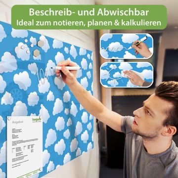 Glas Magnettafel im Querformat Motiv Wölkchen