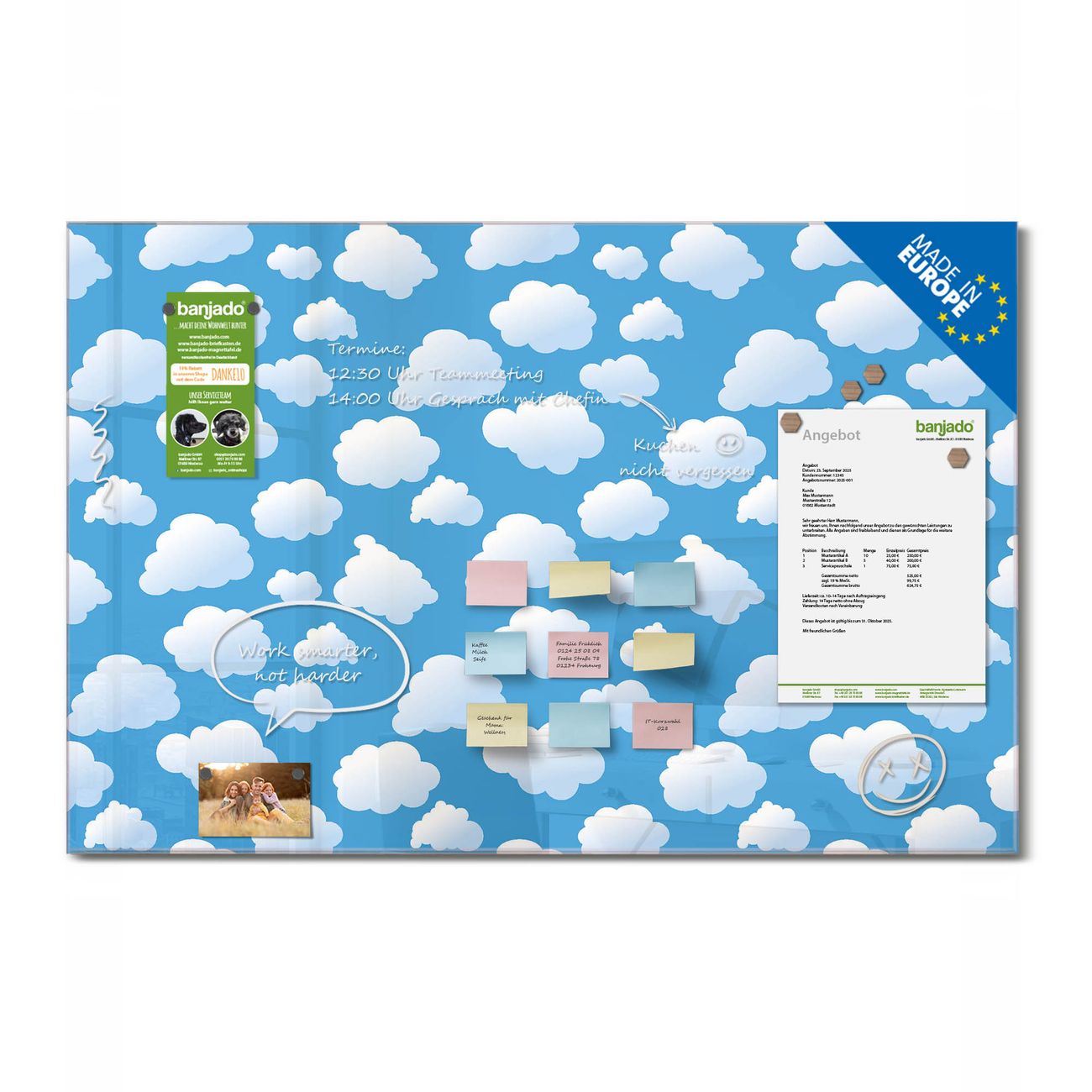 Glas Magnettafel im Querformat Motiv Wölkchen